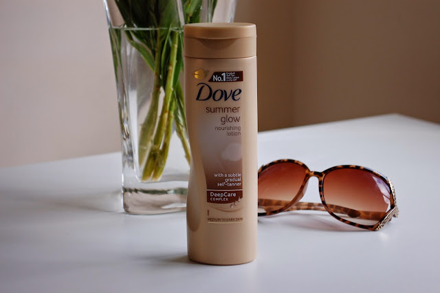I use my Soap and Glory Sugar Crush Body scrub, mainly focusing on my elbows, knees and ankles. Then every other night before bed I apply the Dove Summer Glow all over rubbing in thoroughly. On the nights that I don't apply the gradual tan I apply Vaseline Intensive Care Cocoa Radiant, Vaseline say "Heals dry skin to reveal its natural glow" I don't know if this is true but I find it really hydrates my skin and helps to stop the tan from going flaky. It sinks into the skin quickly and makes my skin feel really soft in the morning. Also I love the cocoa scent!